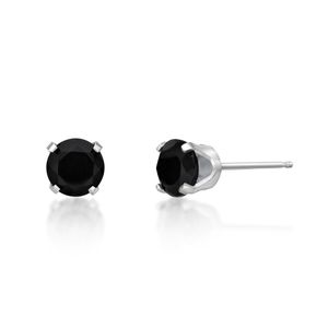 10K White Gold 5MM Black Onyx Round Stud Earrings
