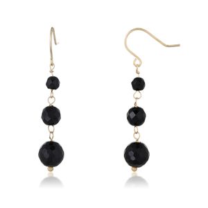 6MM Black Onyx Dangling Drop Earrings Round in 10K Yellow Gold