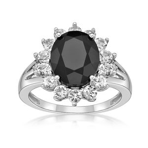 2.25 Carat Oval Black Onyx and White Sapphire Ring in 925 Sterling Silver