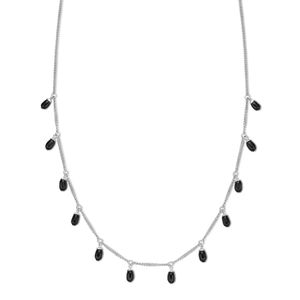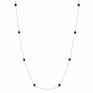 925 Sterling Silver Black Onyx 12 Stone 3MM Station Rolo Chain Necklace - 24 Inch