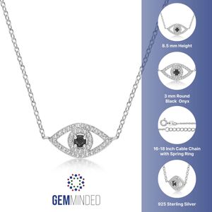 925 Sterling Silver 3MM Round Black Onyx Evil Eye Necklace with Created White Sapphire Accents - 18 Inch Cable Chain