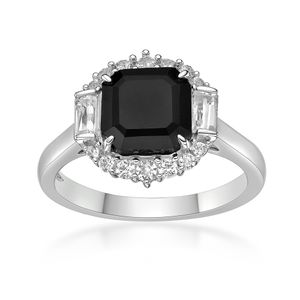 8mm Asscher Cut Black Onyx and Created White Sapphire Ring in Sterling Silver