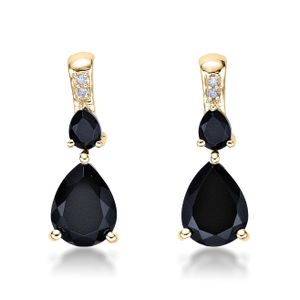 8X6 Pear Black Onyx and 0.02 Cttw Earrings in 10kt Yellow Gold