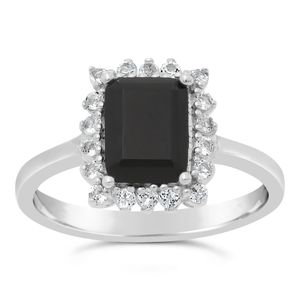 925 Sterling silver 8x6 MM Emerald Cut Black Onyx Ring with White Topaz Accent
