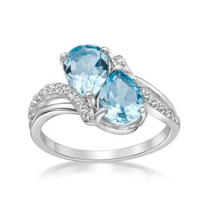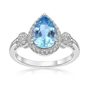 925 Sterling Silver 10X7 Pear Shaped ISQA Certified Sky Blue Topaz and White Topaz Accent Ring