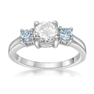 Sterling Silver Ring with Blue Topaz and White Topaz