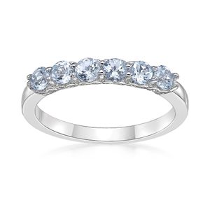925 Sterling Silver 3 mm Round ISQA Sky Blue Topaz Seven Stone Brithstone Ring
