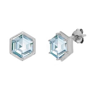 8mm Hexagon Sky Blue Topaz Earrings in Sterling Silver