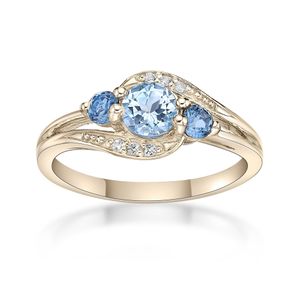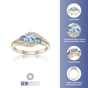 Yellow Gold Plated Sterling Silver 5MM Blue Topaz Ring with London Blue Topaz and White Topaz Accent