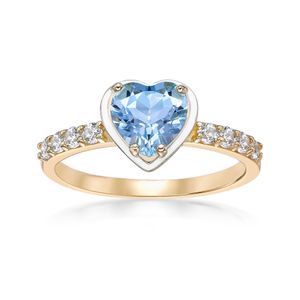 Yellow Gold Plated Sterling Silver Ring with 7MM Heart Shaped Blue Topaz and CWS Semi Eternity