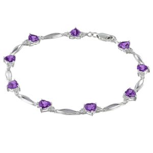 0.40 Heart Amethyst 925 Sterling Silver Cute Bracelet - 7 Inch