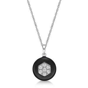 Sterling Silver and Black Ceramic Pendant with 0.13 Cttw