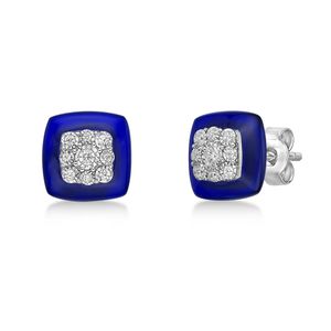 Sterling Silver and Blue Ceramic Earrings with 0.20 Cttw