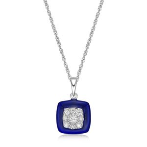 Sterling Silver and Blue Ceramic Pendant with 0.10 Cttw