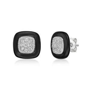 Sterling Silver and Black Ceramic Earrings with 0.16 Cttw