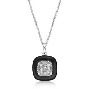 Sterling Silver and Black Ceramic Pendant with 0.10 Cttw
