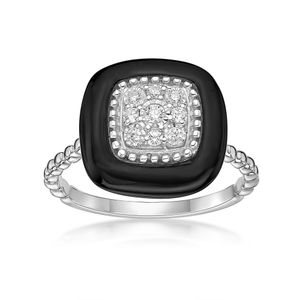 Sterling Silver and Black Ceramic Ring with 0.10 Cttw