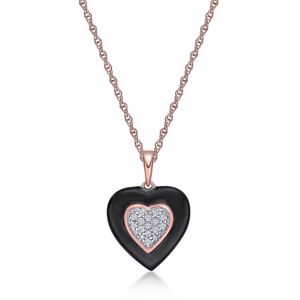 Rose Gold Plated Sterling Silver and Piano Black Ceramic Heart Shaped Pendant with 0.03 cttw Diamons
