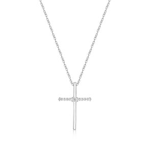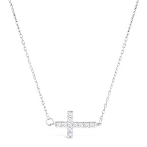 925 Sterling Silver Cubic Zirconia Sideways Cross Pendant Necklace for Women Spring Ring 18 Inch