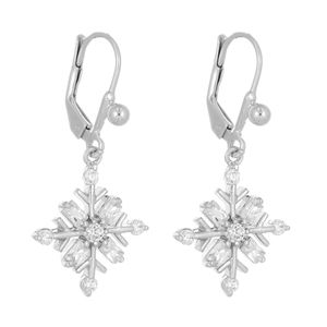 925 Sterling Silver Cubic Zirconia Snowflake Dangle Leaver Back Earrings