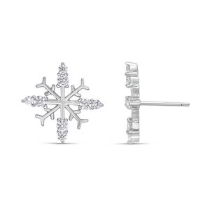 925 Sterling Silver Cubic Zirconia Snowflake Stud Earrings