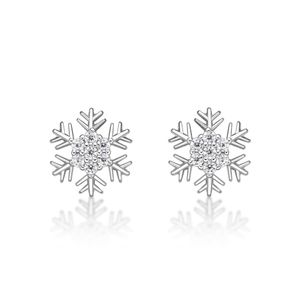 925 Sterling Silver Cubic Zirconia Snowflake Stud Earrings Post