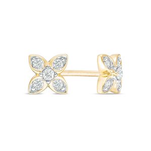 Round Diamond 10K Yellow Gold Flower Stud Earrings