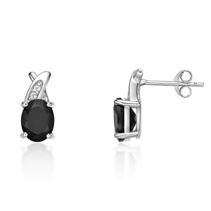 925 Sterling Silver 8X6 Oval Black Onyx Earrings with Created White Sapphire Accent