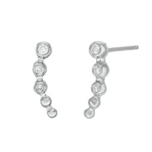 925 Sterling Silver Three Stone Cascading Circles 0.12 Carat Diamond Stud Earrings