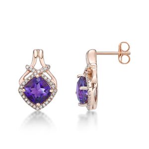 Amethyst Cushion Earrings with Diamond Accent in Pink Gold