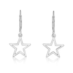 925 Sterling Silver Star Outline Dangle Earrings with Leverback