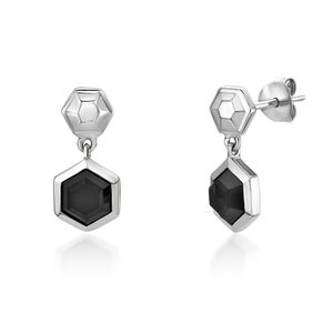 925 Sterling Silver Hexagonal Black Onyx Dangling Stud Earrings