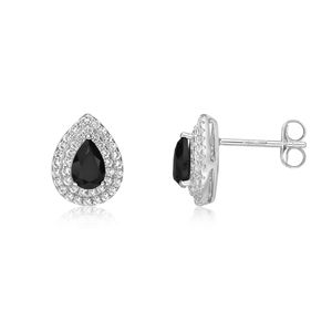 925 Sterling Silver Pear Shape Black Onyx Earrings with White Topaz Accent