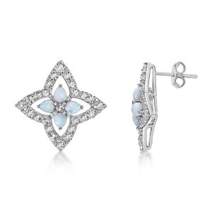925 Sterling Silver Earrings with 4x3 Pear Shaped Created Opal and Created White Sapphire Accent