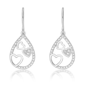 Round Diamond 925 Sterling Silver TrIon Platinge Heart Drop Earrings - 11 MM