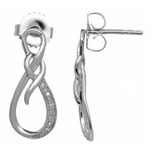 Round Diamond 925 Sterling Silver Infinity and Ribbon Drop Earrings - 9MM