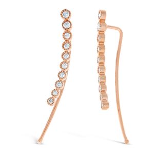 Rose Gold Circle Bezel Crawler Earrings with Round Diamonds, 0.35 Cttw