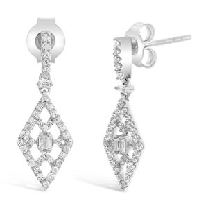 Round Diamond 10K White Gold Modern Dangling Earrings
