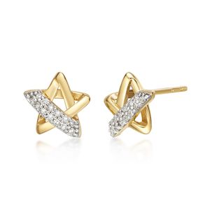 Round Diamonds 10K Yellow Gold Diamond Sash Star Stud Earrings