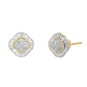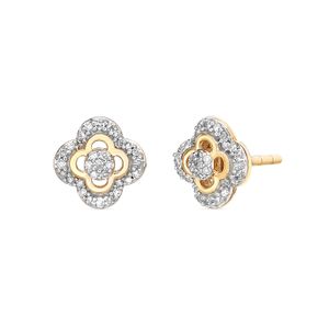 Round Diamond 10K Yellow Gold Clover Stud Earrings