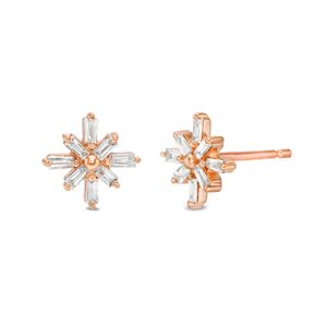 Round Diamond 10K Rose Gold Starburst Stud Earrings 1.0 Heart