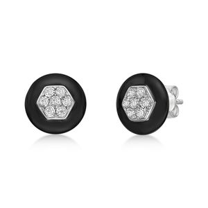Sterling Silver and Black Ceramic Earrings with 0.16 Cttw