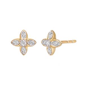 Round Diamond 10K Yellow Gold Flower Stud Earrings