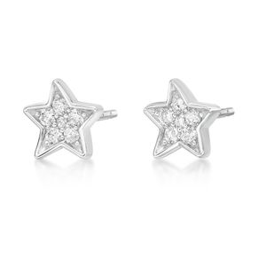 Round Diamonds 10K White Gold Mini Star Stud Earrings
