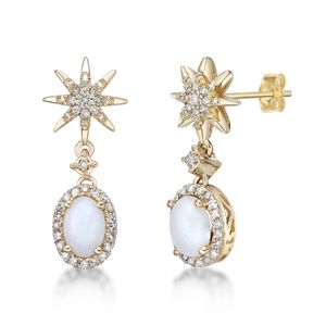 Opal Oval Earrings with 0.20 cttw Diamond in Yellow Gold