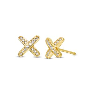 Round Diamonds 10K Yellow Gold X Stud Earrings