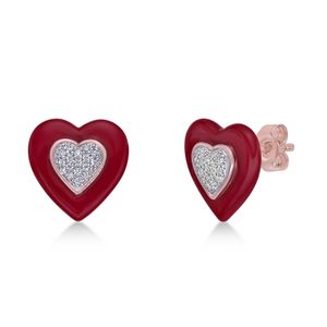 Rose Gold Plated Sterling Silver and Siam Red Ceramic Heart Shaped Earrings with 0.12 Carat Diamonds