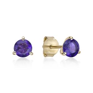 Women's 10K Yellow Gold 5 MM Round Amethyst Martini Stud Earrings