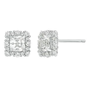 Sterling Silver Earrings with Cushion Created White Sappire