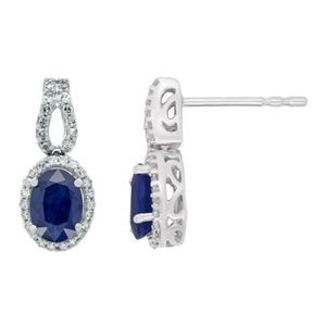 Sterling Silver Earrings with Sapphire and 0.06 cttw Diamond
